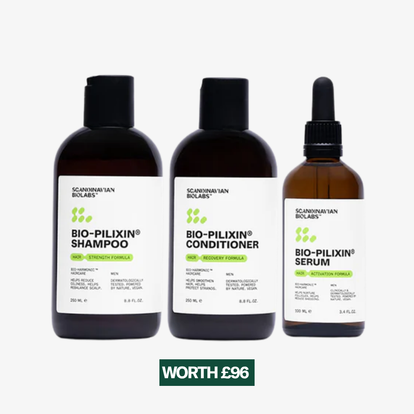 A three-step, plant-powered system designed to reduce hair loss and promote thicker, healthier strands. Clinically tested Bio-Pilixin® formula combines natural ingredients like Capilia Longa and HotFlux to revitalise follicles and support hair density.
